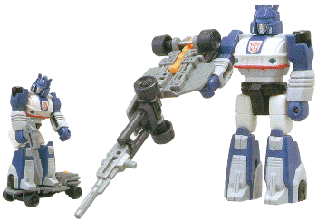 Jazz was one of the more prominent G1 characters, and while the original toy is nicer, he does make for a decent Actionmaster. The choice of navy blue in place of black bothers me a little, but he still looks pretty good. The skateboard is cool, the gun mode is forgettable but doesn't stop it from adding to Jazz's charm - 7/10