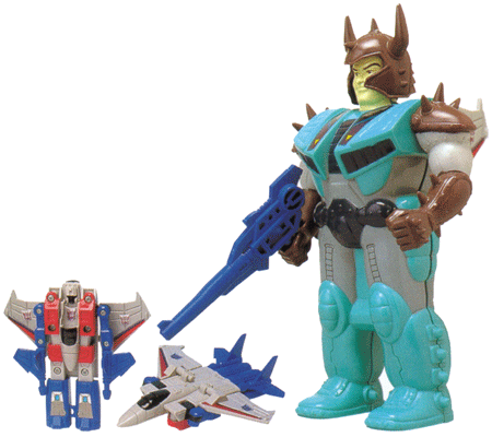 A good Pretender shell that contrasts with the main robot, whilst still complimenting it. The spiky theme and horns aren't really stereotypical Starscream, but the theme is well executed, so I can deal with the divergence.