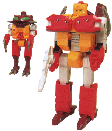 A weird, poorly defined monster. Repugnus does succeed in being a monster, but the shape is just too close to his robot mode to really impress. The insect head makes him seem half-baked, like the designer couldn't be bothered thinking of an interesting monster form. The spark gimmick doesn't really work and the poseability is virtually non-existant, making this a very disappointing monster mode.