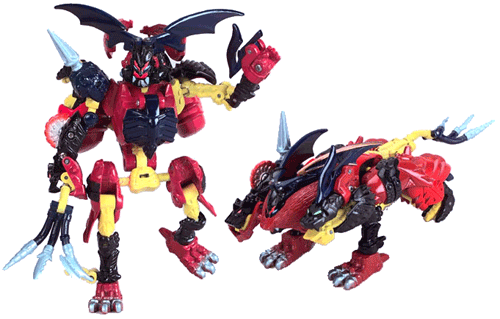 An unusual combination - Bruticus's execution is quite obviously lazy, yet he still manages to be a very good toy. The cerberus is in itself an interesting choice of alt mode, while the robot mode is downright demonic. There's a bagful of play value and weaponry in robot mode, and enough to keep you interested in beast mode. If you liked the detail of Beast Machines, you'll like Bruticus. I have to admit I wasn't a fan of the BM beasts on the whole, but this toy simply has so much to offer it's difficult to not appreciate it - 8/10
