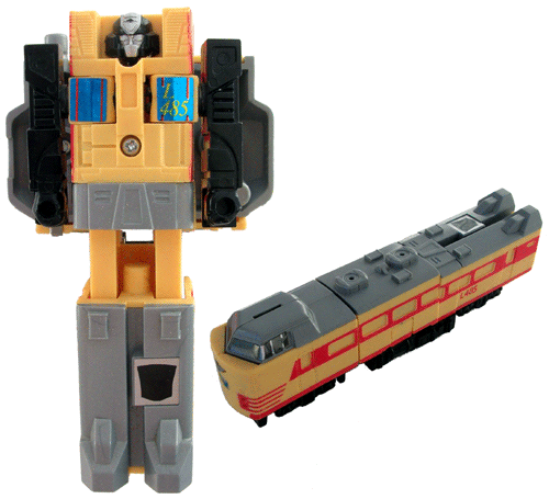 Considering the age of the toy, Seizan's quite nice. I like the train mode a lot - it _really_ looks like a little electric motor car, and it's quite faithful to the car it's based on. The robot mode isn't quite as nice, but it's still a good effort. I should point out that he usually sells for over $US100, and I paid less than $A40 for both him and Yukikaze, so while he's worth the price I paid, he's not really worth what he usually goes for. Assuming you're willing to pay the going rate, or are determined to get Raiden to complete your Headmasters cartoon collection, Seizan is a good toy - 7/10